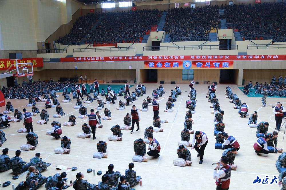 为了普及全民急救自救常识,提高师生的紧急救援能力,合力打造健康中国、平安校园。9月24日上午,学校特邀附属第三医院的国家紧急医学救援(山西)队来中都校区为军训期间的2024级新生开展应急安全知识“五进”活动。校党委副书记彭月兰、山西省卫生健康委员会应急办主任张朝华、附属第三医院副院长刘俊出席。武装保卫部、学生工作部、团委、体育教学部等部门负责人参加了启动仪式。