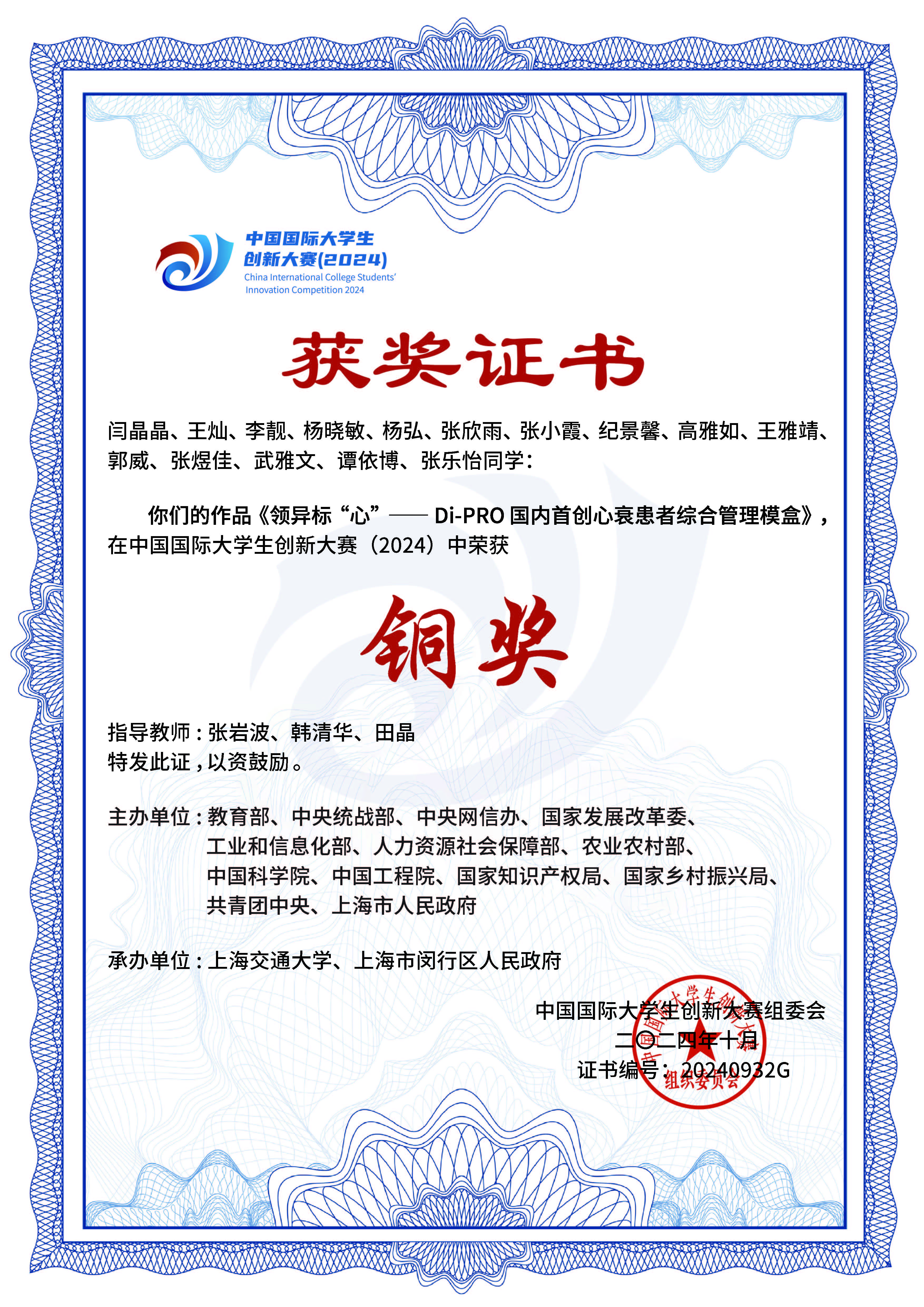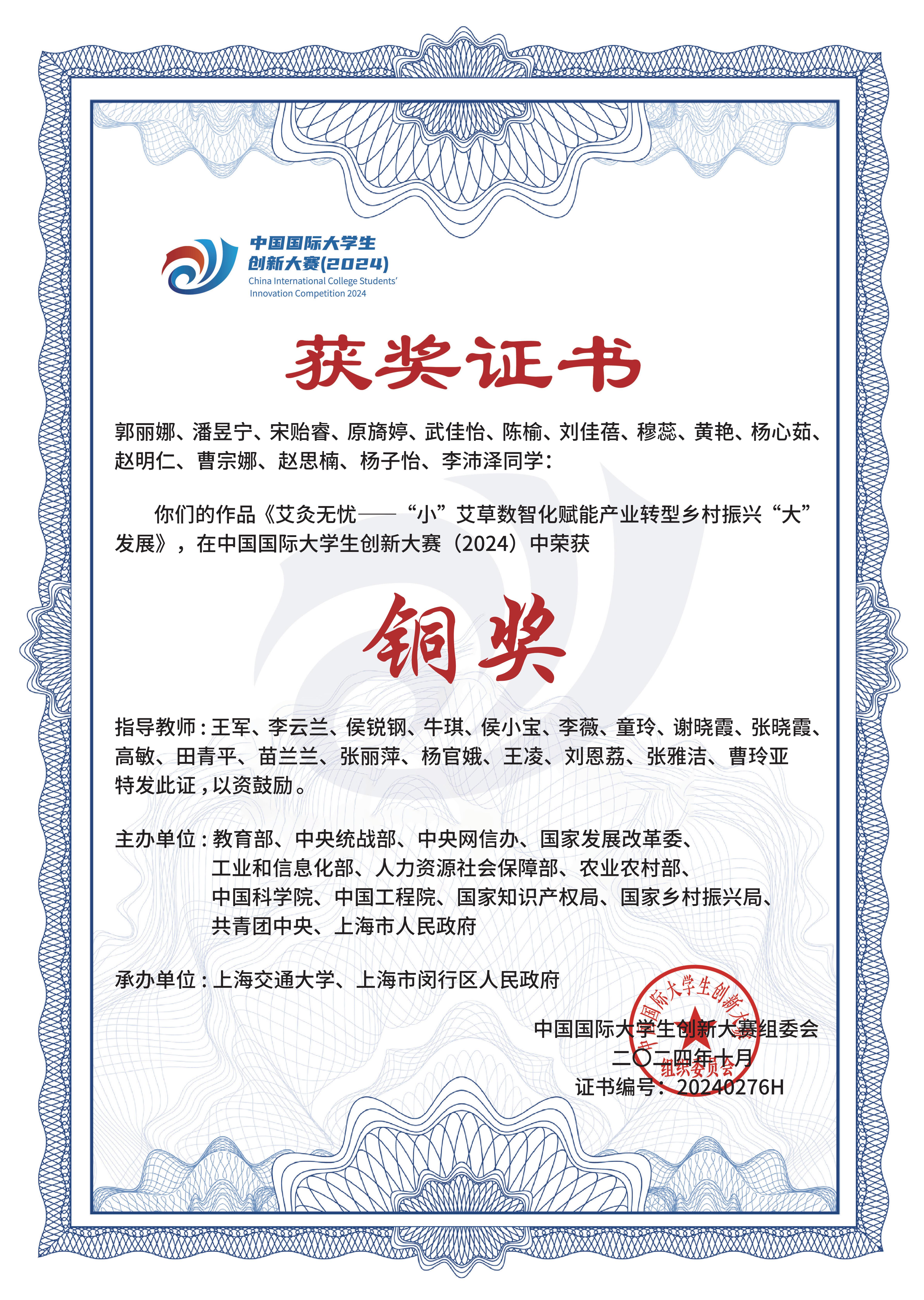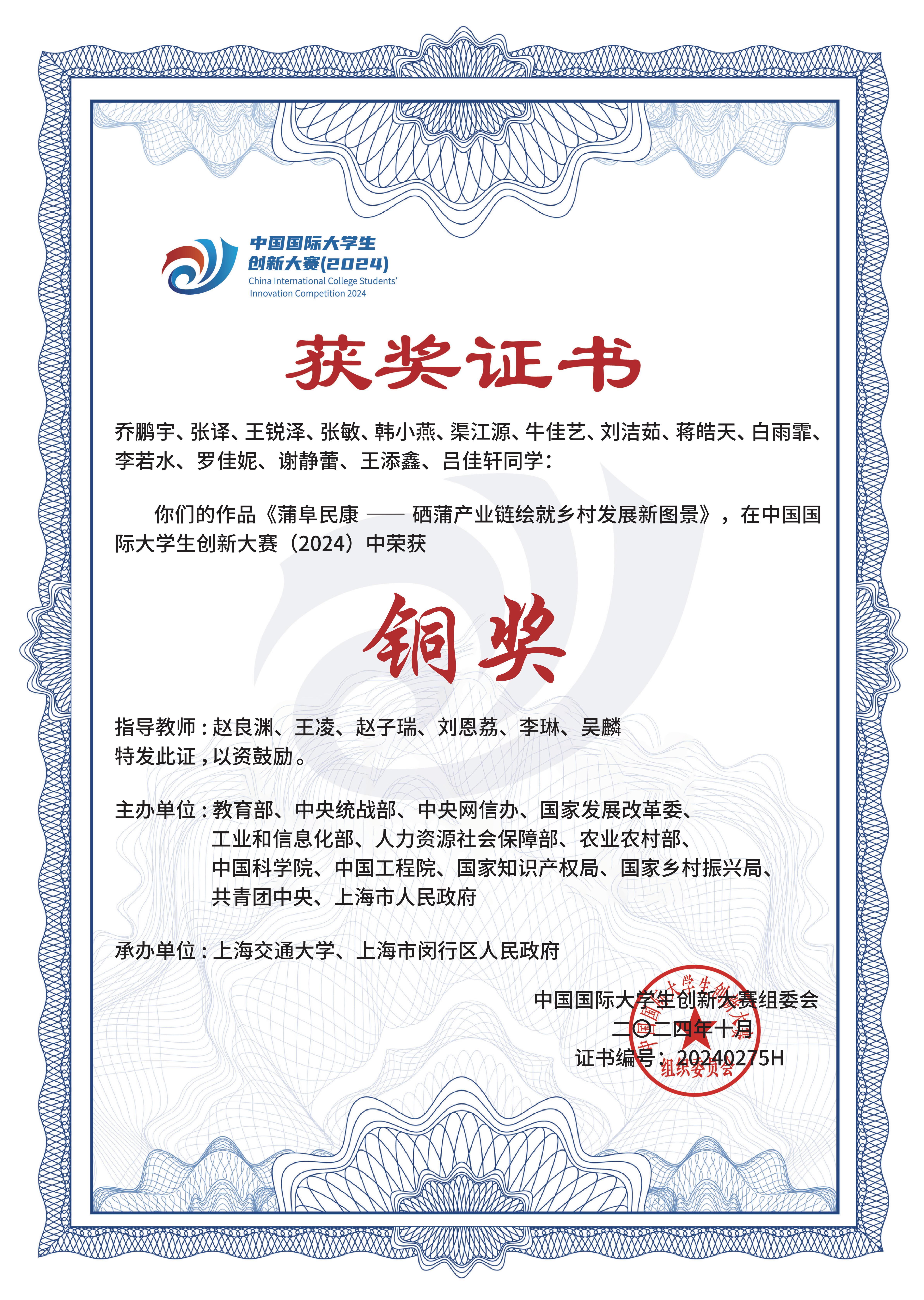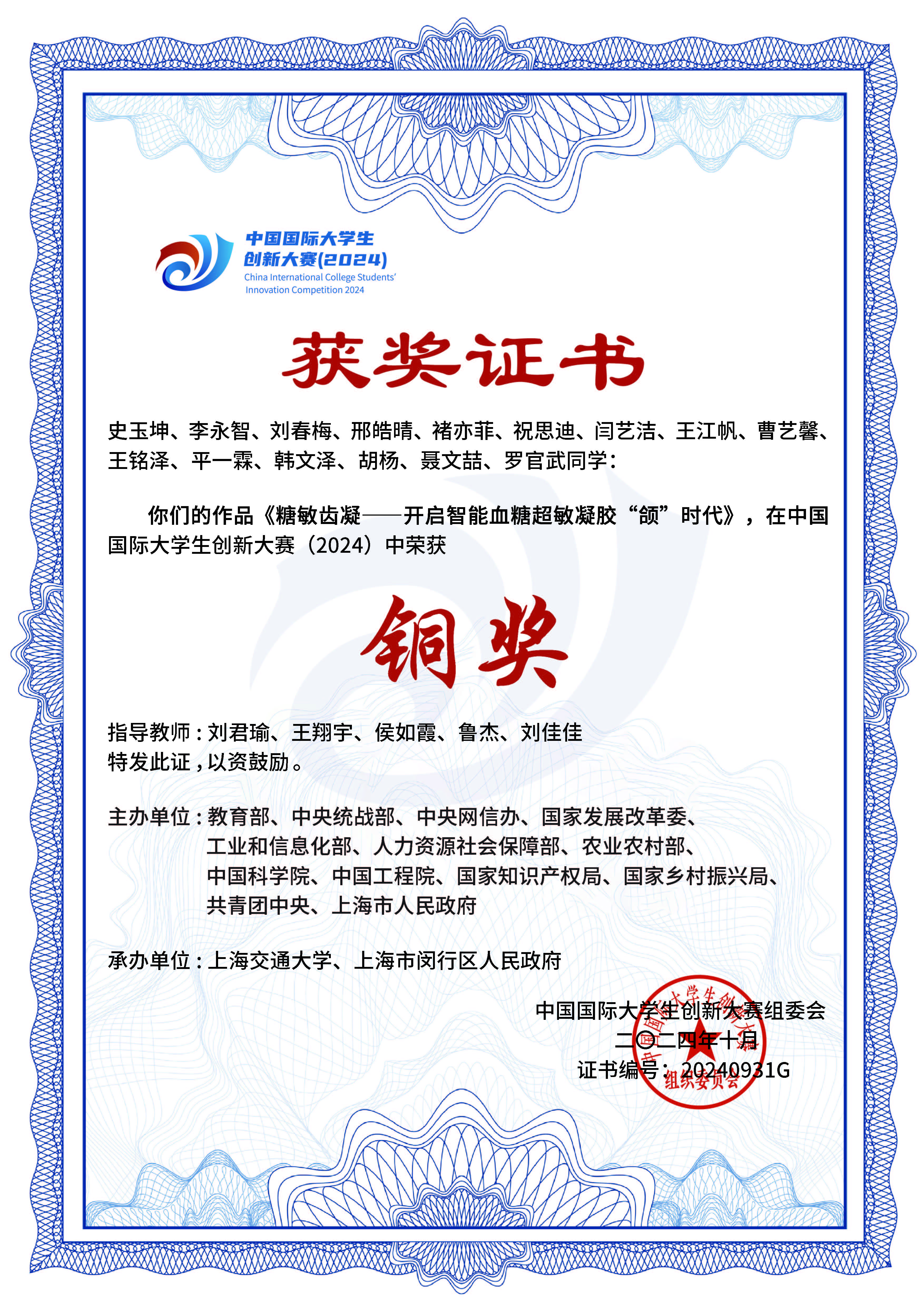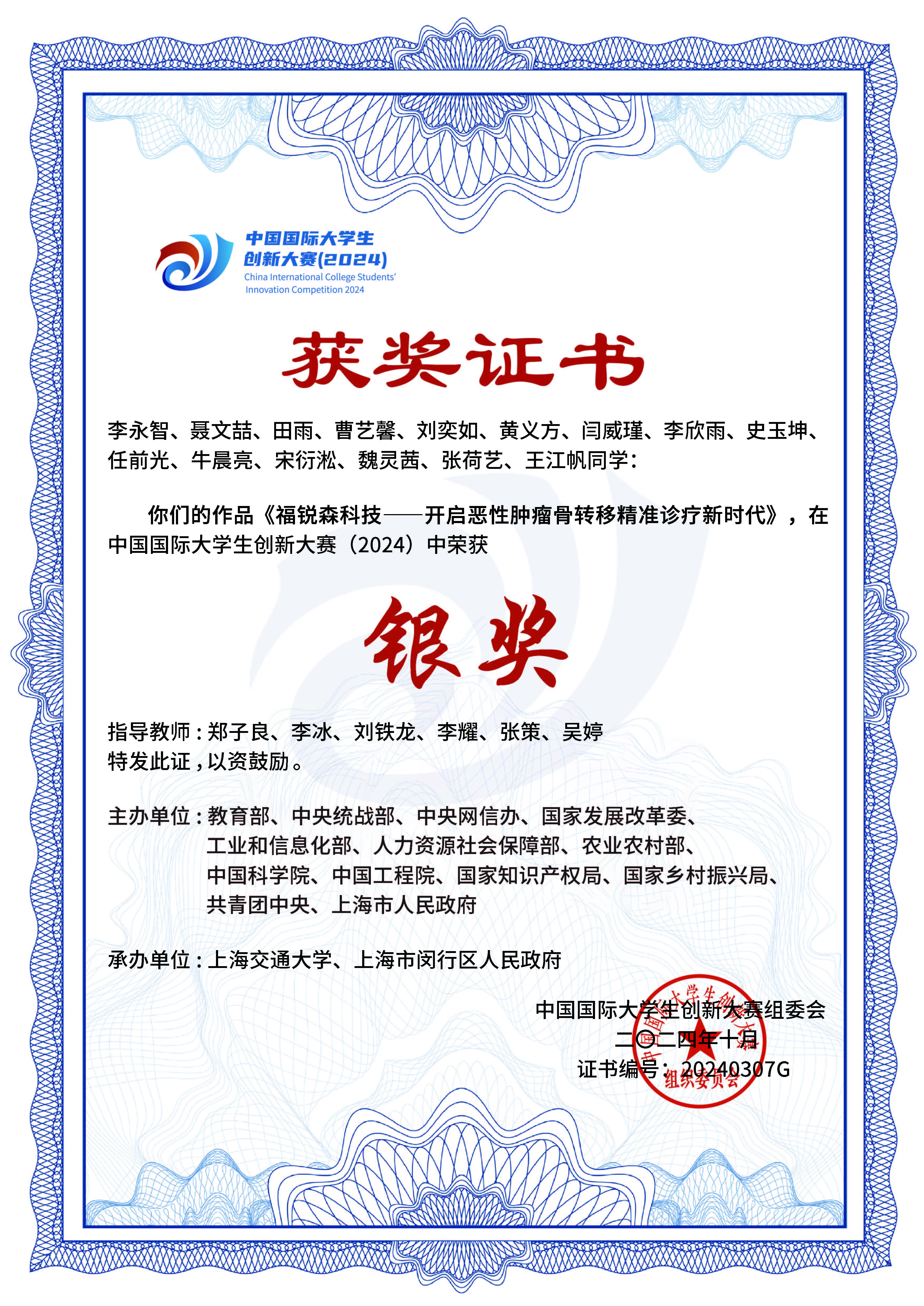 2024中国国际大学生创新大赛国赛获奖证书(2银5铜)