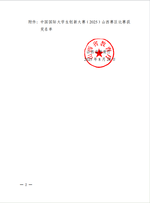 山西省教育厅关于公布中国国际大学生创新大赛(2025)山西赛区比赛获奖名单的通知