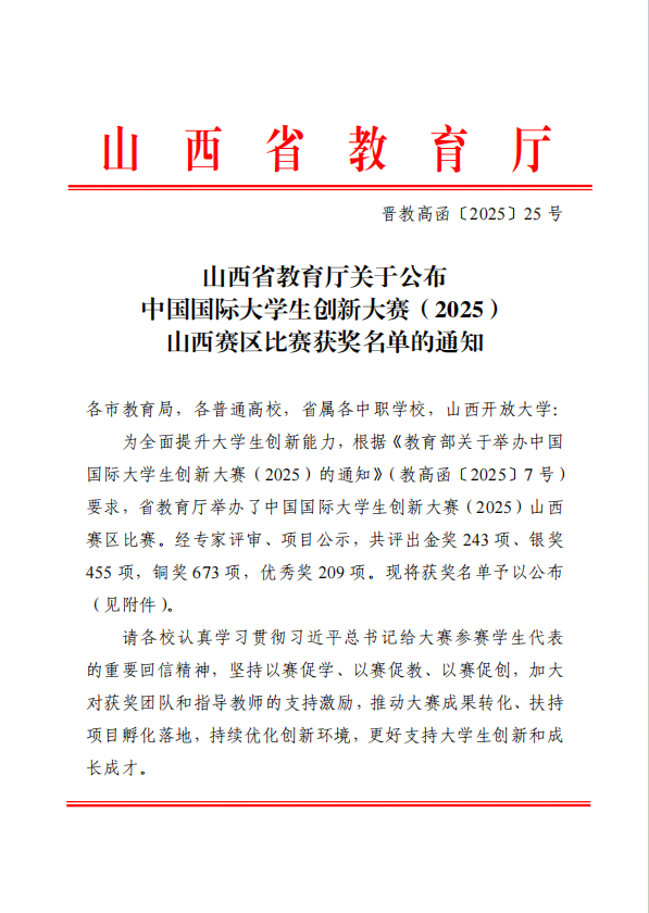 1_晋教高函〔2025〕25号山西省教育厅关于公布中国国际大学生创新大赛(2025)山西赛区比赛获奖名单的通知 1(1).pdf