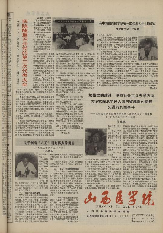 (山西医学院第三次党代会校刊报道)