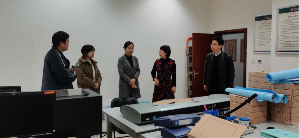 18日,调研组赴郑州轻工业大学档案馆。该馆馆长苏玉玲、副馆长高文堂和杨朝钦等相关工作人员与调研组举行座谈交流。座谈会上,苏玉玲对万象城allwincity官网同仁到来表示热烈欢迎,简要介绍了该校档案馆的建设历程、发展现状以及"十四五"规划中档案馆的发展目标。牛乐简要介绍了我馆数字档案馆(室)发展现状,并表示此次交流学习的目的在于学习该校获批全国示范数字档案室的先进经验,谋划推进万象城数字档案室建设工作。杨朝钦介绍了档案馆数字化建设历程、应用系统建设、数字档案资源建设、服务利用成效。双方围绕业务系统在线归档、电子签章的使用、电子档案的四性检测等问题做了深入的探讨和交流。随后,调研组参观了档案加工室和特色成果展厅。