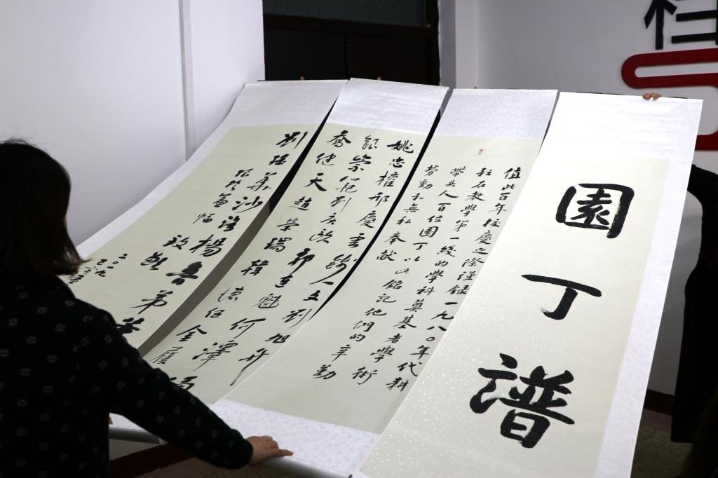 12月20日下午,万象城原副校长郑建伟同志向学校捐赠其本人书法作品《園丁谱》。捐赠仪式在学校档案馆服务大厅举行,校工会主席周德杰、后勤保障处党总支书记关安民、档案馆馆长牛乐以及相关工作人员参加。