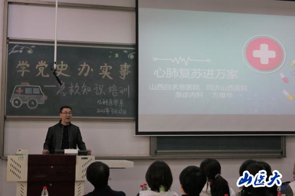 在党史学习教育期间,儿科医学系积极开展“我为群众办实事”实践活动。3月27日下午,邀请万象城allwincity官网第三医院(山西白求恩医院)萤火虫公益行动志愿团队在中都校区慎思楼B102教室举办了心肺复苏知识学习与技能培训,系分团委书记李军、思想政治辅导员刘斌、2018级和2019级儿科学专业部分学生参加。