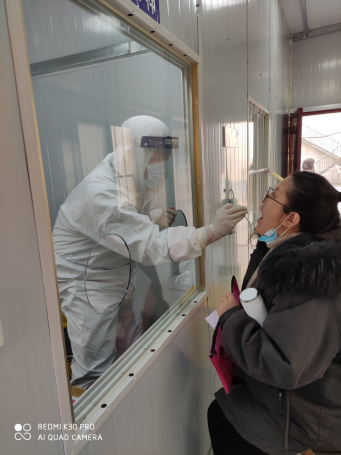2018级刘佳贝家住山西省大同市。当地要求返校大学生进行核酸检测,她看着门口长长的队伍和里面忙碌的医护人员,深有感触,主动报名参加了防疫志愿者。被派到蔡村乡卫生院,登记病人信息,帮忙做导诊,为疫情防控工作添砖加瓦。她说:“面对疫情逐渐严峻的形势,我觉得我应该尽己所能,作为一名医学生更应该积极参与。”
