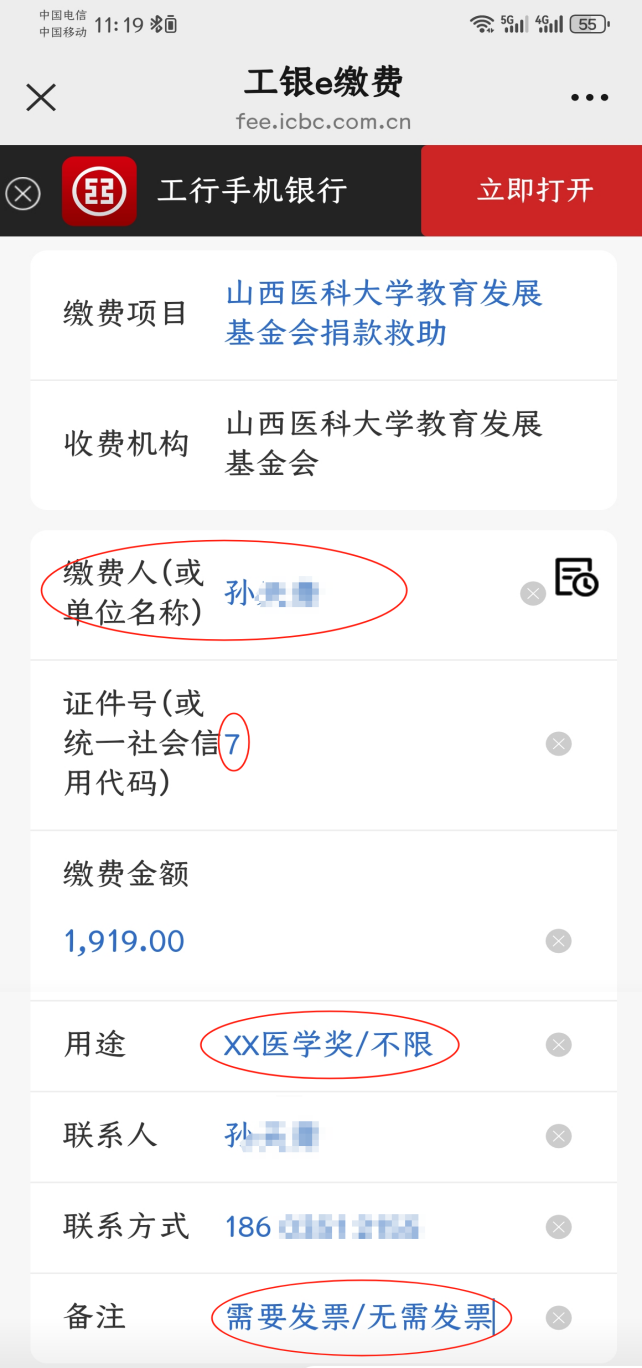您可以使用微信或中国工商银行APP扫描以上二维码,扫码后进入以下界面: