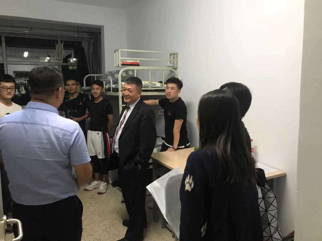 一进寝室,贠院长就亲切地询问同学们来自哪里、饮食上是否习惯、生活上能否适应,入校后的感受、对未来的计划以及今后的发展规划,嘱咐同学们要尽快熟悉大学生活,并与同学们友好相处。还叮嘱同学们要注意个人财物的保管、不要轻信推销人员、加强自身安全防范意识,有问题及时和老师沟通解决。各位老师叮嘱大家要好好珍惜大学时光,合理安排时间,并努力完成自己的目标。