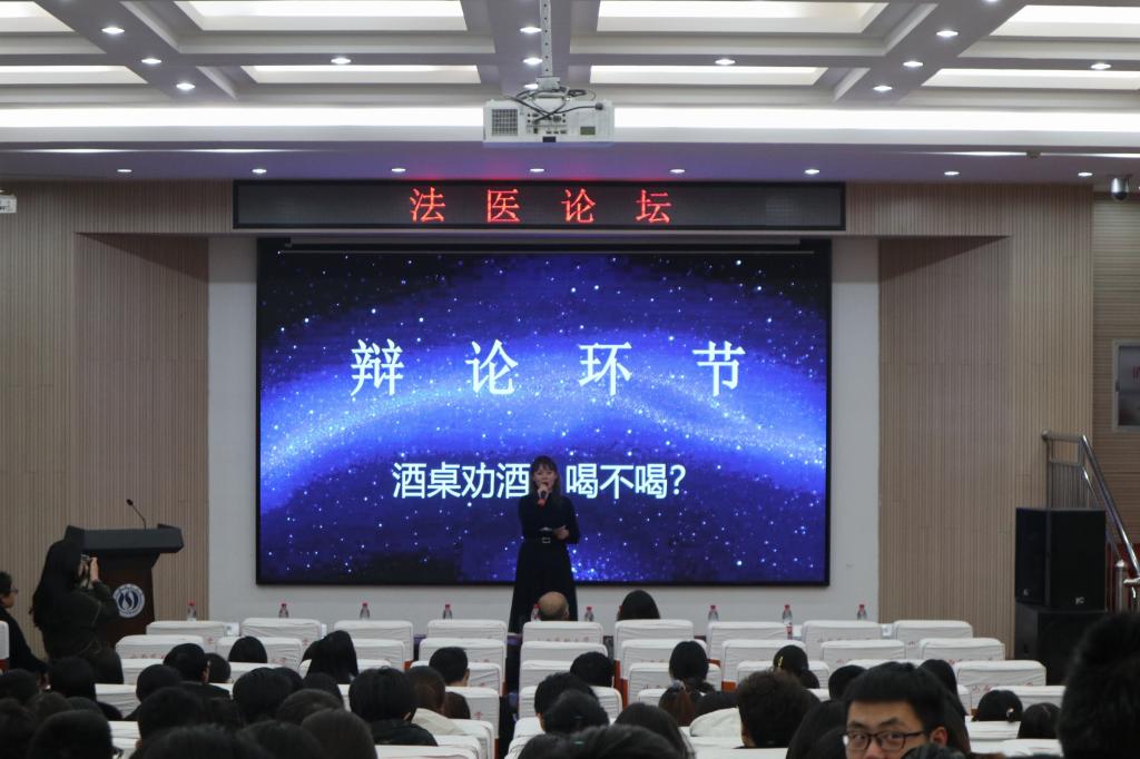 论坛中,正反方辩手以“酒桌劝酒,喝不喝”为题,展开激烈辩论,通过喝酒导致的不良后果引出乙醇对人体的影响及乙醇死后再分布相关专业知识。针对劝酒喝酒人生价值观的选择与法医学专业知识乙醇概念的疑问,法医学院副院长尉志文和毒化教研室贾娟两位副教授进行了精彩的专业点评,同学们受益匪浅。
