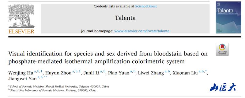 近日,万象城法医学院严江伟教授创新团队以犯罪现场生物检材即时检测为目的做出系列研究成果,在国际分析化学领域顶级期刊Talanta、Analytical Chemistry上先后发表了题为“Visual identification for species and sex derived from bloodstain based on phosphate-mediated isothermal amplification colorimetric system”“Lateral Flow Biosensor Based on Isothermal Amplification for Visual Identification of Species and Sex from Bloodstain”的研究论文。两篇论文将等温扩增技术分别与磷酸盐介导的比色法及侧向流层析装置相结合,可实现犯罪现场痕量血痕的种属和性别即时鉴定。