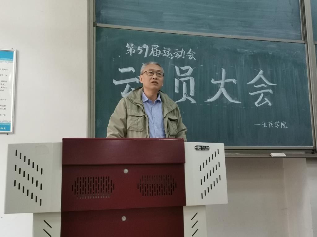 李书记进行了激情饱满的动员讲话,参加体育赛事是给大家一个锻炼自己的机会和互相交流的平台,此外李书记还讲述了法医学院的过去和目前发展情况,指出互帮互助、团结奋进是我们法医人的精神,法医学院的发展需要我们每个人的努力,相互成就才会使法医学院越来越好。