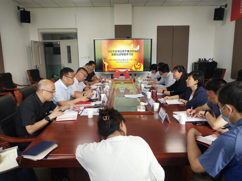 2022年5月25日下午,法医学院党总支理论学习中心组在学院会议室召开扩大会议,专题学习习近平总书记关于廉洁文化的重要论述。学院党政班子成员、办公室主任、各党支部书记、专职组织员参加集体学习。校首轮巡察第二巡察组组长张轩萍、副组长郜亮、联络员金姬、成员杜旭峰、燕燕、郭晔列席会议,法医学院党总支书记孙俊红主持会议。