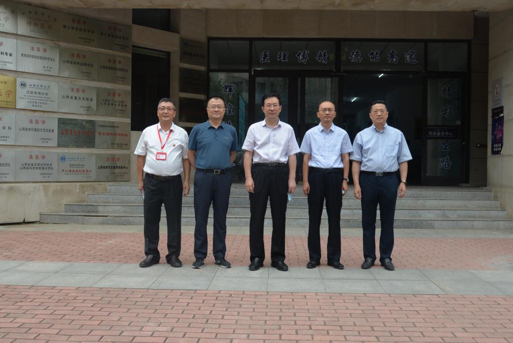 2021年8月11日,山西省司法厅厅党委书记、厅长董一兵,司法厅党委委员、副厅长曾涛,司法厅党委办主任李强,司法厅办公室主任王素梅,司法厅行政审批管理处处长韩光,司法厅司法鉴定管理处(仲裁管理处)处长孙志坚,太原市司法局党组书记、局长张彤等一行十人来中心调研。