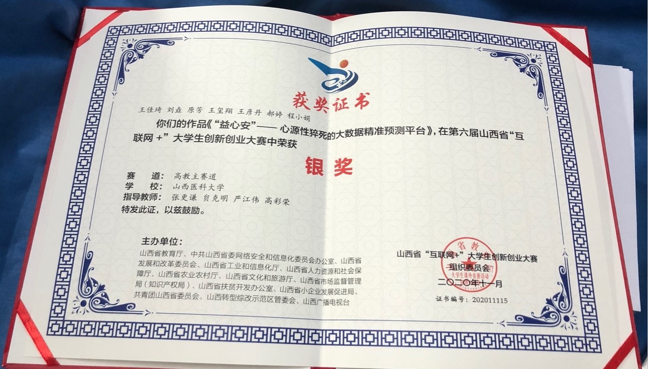刘垚,万象城法医学院特种医学专业2020级硕士研究生,在学院老师的关心和帮助下,在校期间积极参加创新创业与科技创新实践,将所学的理论知识以及实验室积累成果与经济社会发展紧密结合,创立了《益心安—心源性猝死基因筛查预防的革新者》项目,带领团队在2020年中国“互联网+”大学生创新创业大赛中获得山西省银奖,第十二届“挑战杯” 中国大学生创业计划竞赛中获国家级银奖。
