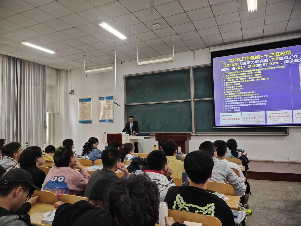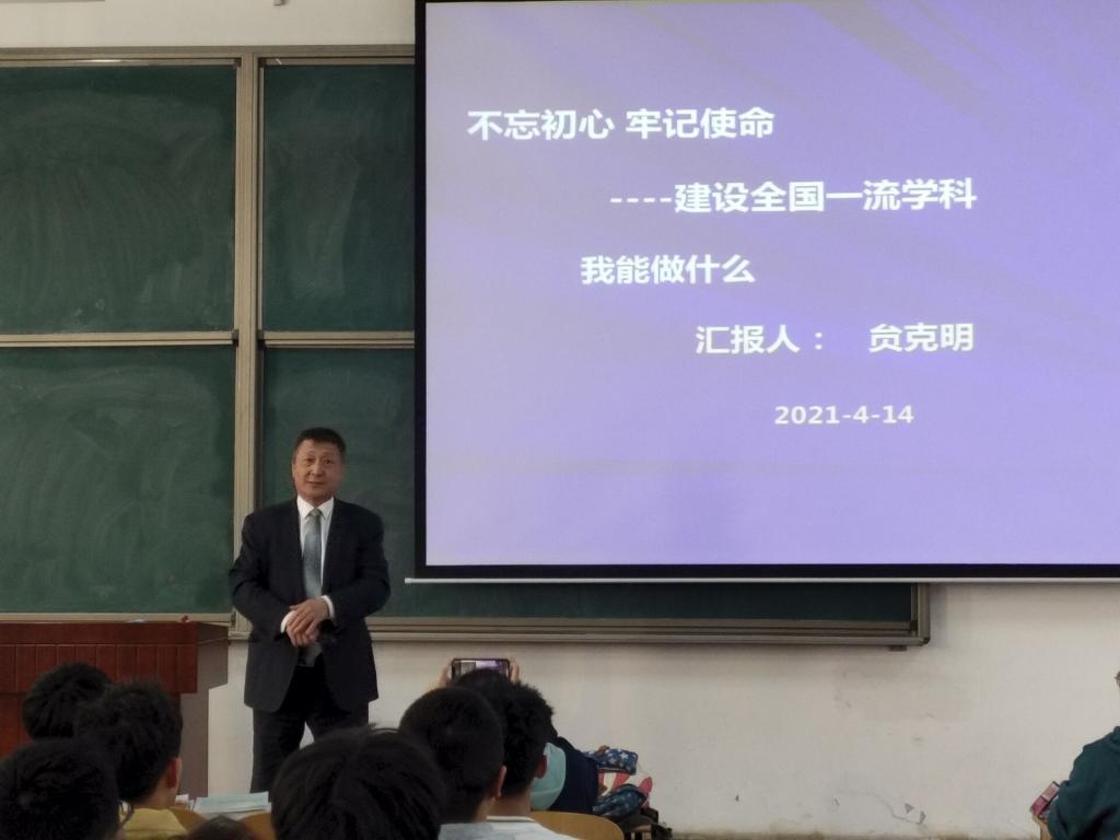 2021414日下午四点在慎思C101教室,法医学院党总支书记、院长贠克明教授对2018级、2019级、2020级全体本科生开展不忘初心、牢记使命——建设全国一流学科我能做什么的专题思想政治教育讲座。
