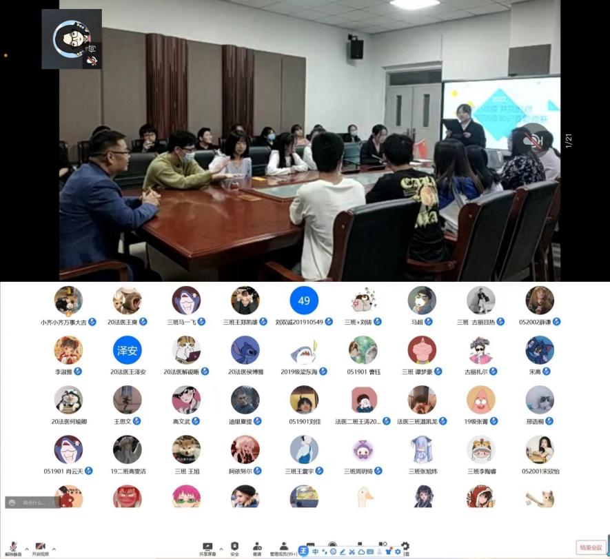 响应青春号召,凝聚抗疫力量。2022年5月4日晚,法医学院党总支书记孙俊红推陈出新,以线下结合线上直播的“翻转课堂”形式为2019、2020级学生带来了一次别开生面的抗疫宣讲体验。2019、2020级辅导员何文婷线上参加本次“翻转课堂”活动。