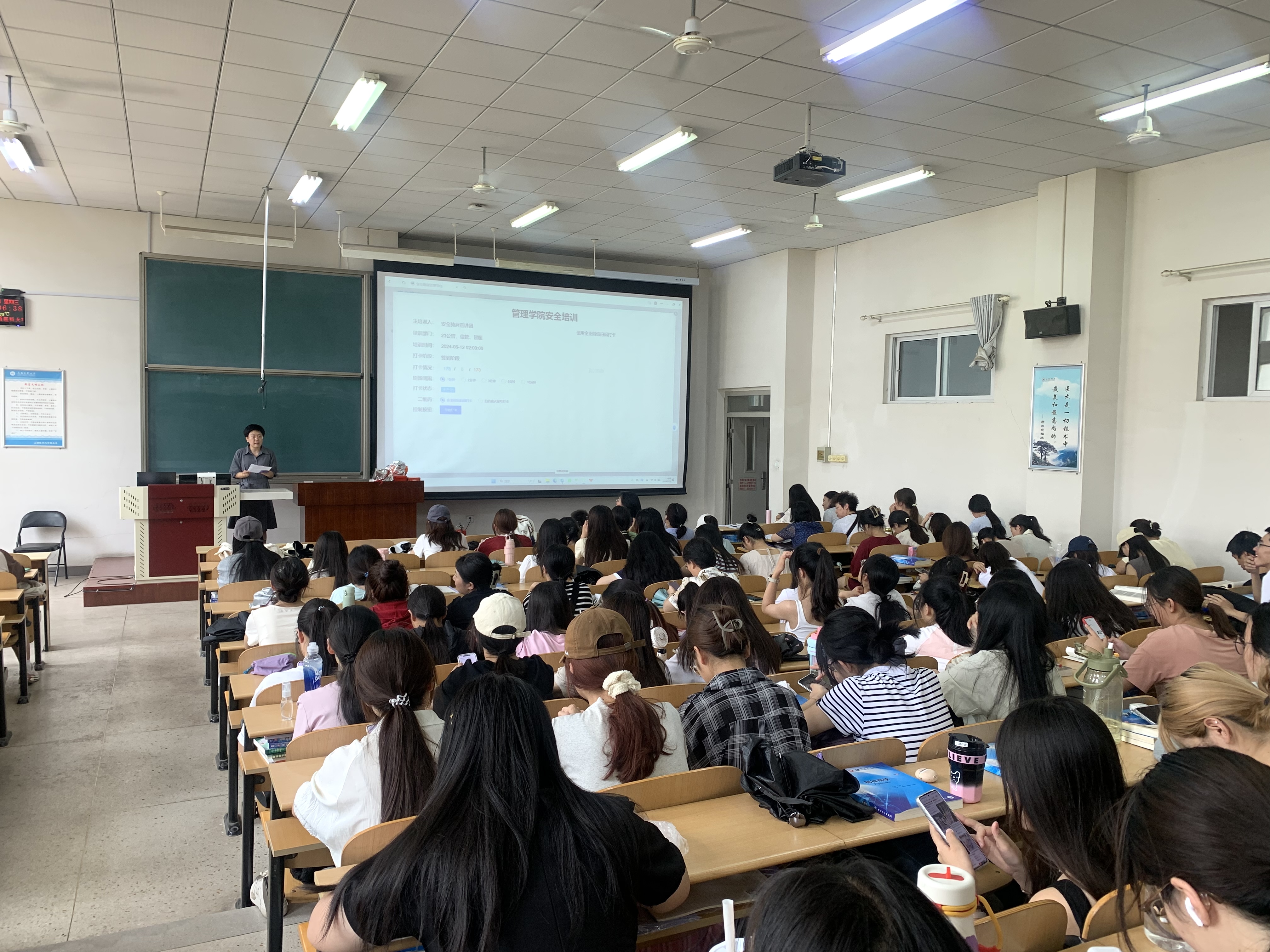 为进一步深入贯彻习近平总书记关于安全生产的重要论述及指示精神,切实增强师生安全意识,6月12日下午,管理学院邀请校保卫部安全宣讲团在笃行B302教室举行了以“树安全观 防安全事 懂安全技”为主题的安全教育暨技能培训。学院师生共200余人参加培训。