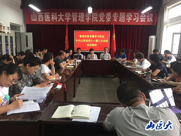 8月23日下午,管理学院在学院会议室召开理论学习会议,专题学习传达中共山西省委十一届八次全体会议精神。学院党政领导和全体教职工参加了学习,院长程景民主持了会议。