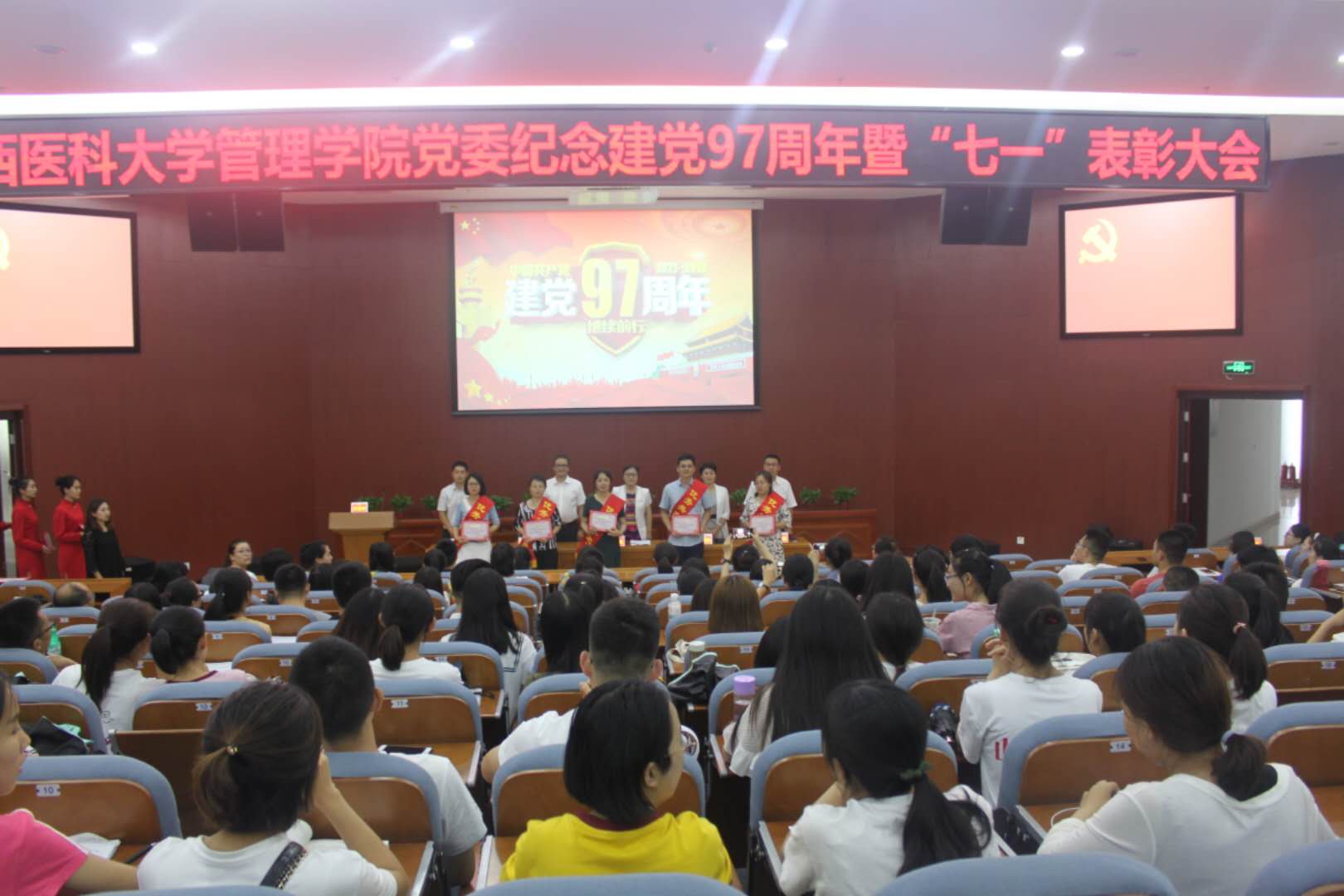 贺培凤副书记作重要讲话。她首先代表校党委和校行政向学院广大共产党员致以节日的问候,向为校院事业发展做出贡献的全体师生致以崇高的敬意,向受表彰的先进集体和优秀个人致以热烈的祝贺。贺培凤在讲话中强调,中国共产党已经走过了97年不平凡的历程。历史和实践雄辩地证明,只有共产党才能救中国,只有共产党才能发展中国。中国共产党不愧为伟大、光荣、正确的马克思主义政党,不愧为中国特色社会主义事业坚强的领导核心。我们要不忘初心、牢记使命,从党的伟大历史中汲取力量。她对管理学院一年来的党建工作给予肯定和鼓励,同时也提出新的希望和要求。她希望学院党组织和广大党员师生,进一步发挥好坚强的政治核心、战斗堡垒和先锋模范作用,坚定信念,团结奋进,在建设“特色鲜明的高水平研究教学型医科大学”征程中,立足岗位做贡献,为全面推进新时代校院改革发展、实现学校“两个一百名”的万象城梦而努力奋斗。
