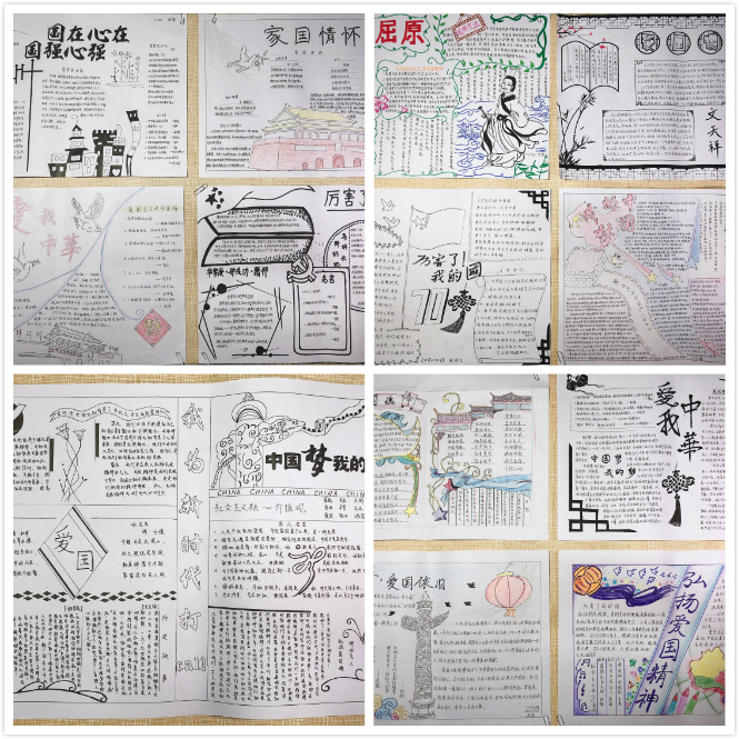 爱国心,以在支部党员、入党积极分子中征集手抄报为主要形式,将爱国主义经典人物和事迹作为题材,促进学生对爱国主义的深入解读和情感认同。活动共征集手抄报27份,有的以讴歌屈原陆游等爱国主义诗人为主题,有的以再忆苏武岳飞的忠君爱国故事为背景,既有爱国主义成语诗词,也有典故及时代新解,涵养了民族自豪感与家国情怀,加深学生对于爱国主义传统文化的理解,弘扬主旋律,传递正能量,使传统文化“立”起来。