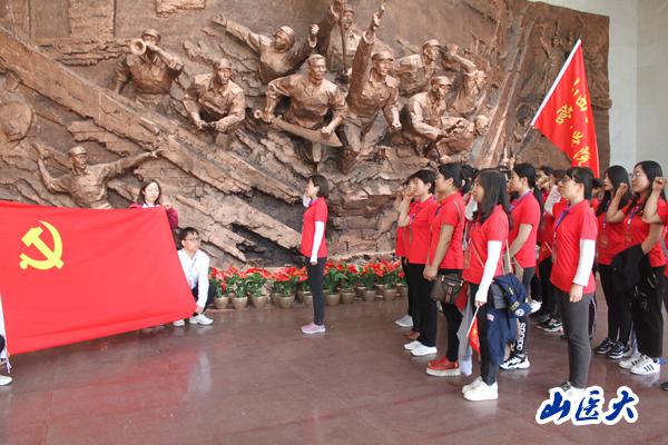 在百团大战纪念馆,大家在讲解员的引导下,通过一张纸图片、一件件遗物、一段段文字,重温了百团大战惊心动魄、艰苦卓绝的战斗过程,深刻感受了革命前辈百折不挠、视死如归、坚忍不拔的革命精神。随后,在庄严的纪念馆序厅,全体党员面向鲜红党旗庄严宣誓,重温入党誓词,激励自己不忘初心、牢记使命、永远奋斗。