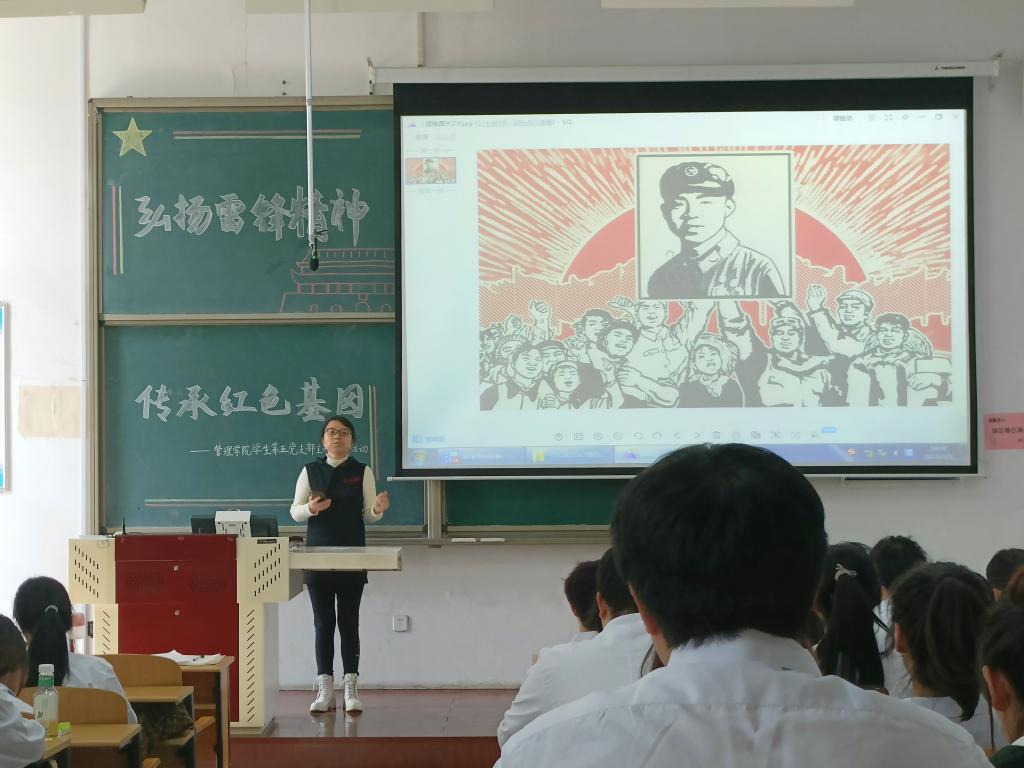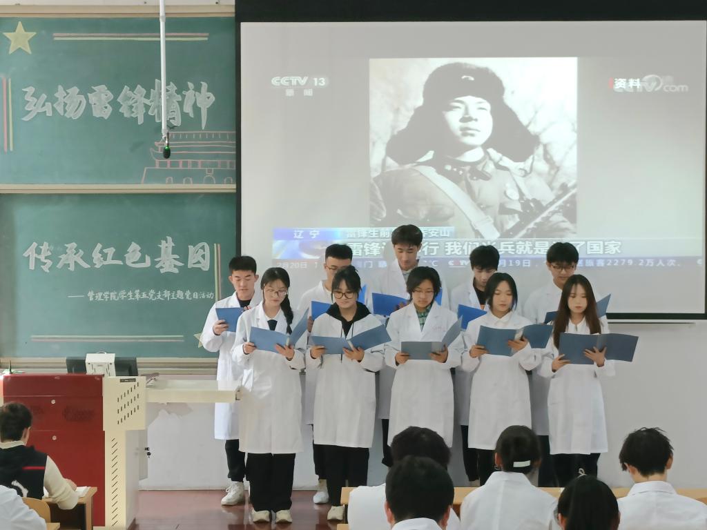 为更好地贯彻落实习近平总书记对深入开展学雷锋活动作出的重要指示精神,让“学雷锋”在新时代大学生中蔚然成风,3月5日,在第六十个“学雷锋纪念日”,管理学院学生第五党支部在慎思楼C座203教室开展了“弘扬雷锋精神,传承红色基因”主题党日活动。党支部书记岳红娟以及全体党员和入党积极分子参加了此次活动。