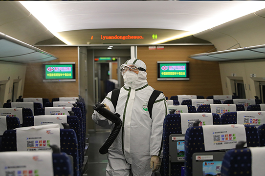 韩建彪,2006级预防医学专业本科生,2011级环境卫生学硕士研究生,现任太原局集团公司疾控所消毒科科长。自疫情出现后,韩建彪主动请战,冲在了防控疫情的第一线。现在途径武汉的车都要进行消毒,现场、站段,主要是列车,有发热的病人,回来都需要处理消毒,运行路上也要对消毒进行技术指导。一列客车停车入库,他就要开始紧张的准备工作,穿戴防护用品,配置消毒药液,防护用品穿戴好后,提起药箱,上车进行喷洒,每天都要背着30斤重的喷雾器来回行走约两三万步,日均消毒十辆车。宿营车、卧铺、硬座车,一节车厢一节车厢的走,窗户、行李架、桌子、地面、乘务室、厕所,每个角落都认真喷洒药液,确保无死角消毒。一趟趟,一次次,一整天下来,浑身上下腰酸腿疼,喉咙沙哑,但他依然坚守在岗位上,将消毒工作落实到位,确保列车卫生安全。韩建彪已经一周没有休息,身体处于应激虚脱状态,谈及自己的妻子孩子,心中也是满怀愧疚,尽管如此,他也毫无怨言,依然抗战在第一线。“疫情来了,我们就是坚强防线。一说工作我就兴奋,放不下嘛。因为学的公共卫生,我学了八年,5年本科,3年硕士,虽然不能救死扶伤,但是疫情来了我们就得出,这就是公卫人的精神”,韩建彪坚定地说。是啊,哪有什么岁月静好,只不过是有人替我们负重前行!