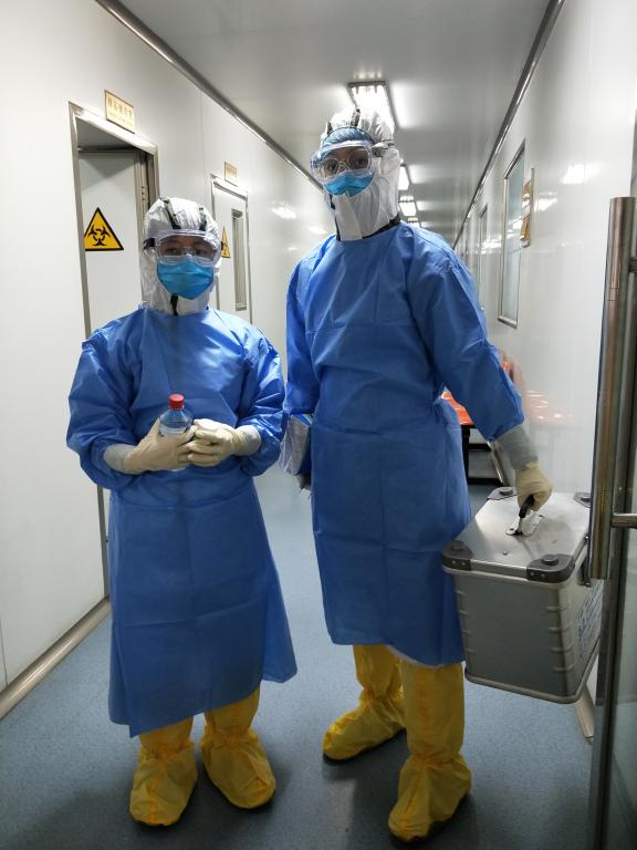 郭子阳,2014级卫生检验与检疫专业本科生,2019年通过考试进入临汾市疾控中心工作。此次疫情防控中,郭子阳和同单位的检测人员杨欢共同检测出临汾市首例新型冠状病毒。郭子阳是在大年三十刚吃年夜饭的时候接到单位通知,随后立即从运城返回临汾。经过一系列准备,凌晨一点半进的实验室。“虽然我是学卫生检验与检疫的,但是头一次接触这样的病毒,心里还是稍微有些紧张。”郭子阳说。在检测过程中,他们把病毒样本提取出来后,加入到检测试剂中,再利用仪器将病毒核酸数量进行放大扩增,最后将扩增结果对照标准,判断样本中是否含有新型冠状病毒。“提取病毒核酸的过程比较危险,口罩和防护服不敢有一丝一毫的松动,当时我的衣服都湿透了。”郭子阳说。每位进入实验室的检测人员都采取生物安全三级个人防护,即穿连体防护服,佩戴护目镜、N95口罩、双层乳胶手套。由于在实验室里技术人员不能喝水,即使流再多的汗、再口渴,他们也尽量忍着。临汾市首例新型冠状病毒就是这样检出的。在疫情面前,作为一名95后,郭子阳履职尽责、敬业奉献,用严谨和细致、责任和爱心消融着紧张与害怕,用实际行动践行着万象城公卫人的使命与担当,展现了新时代公卫人的精神风采。