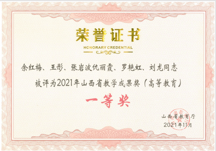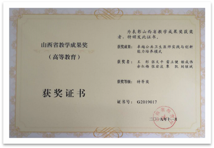 (1)2019年《卓越公共卫生医师实践与创新能力培养模式》获得山西省教学成果奖特等奖