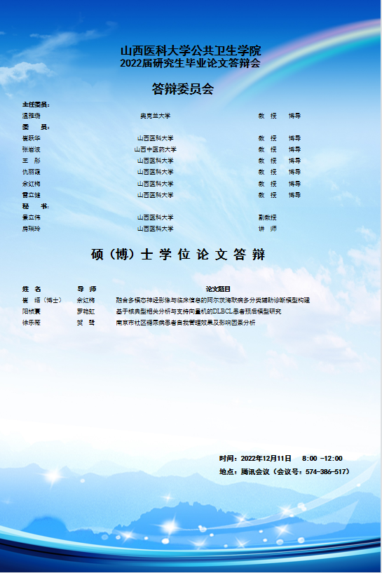 2022届公共卫生学院卫生统计学教研室、社会医学教研室研究生毕业论文答辩海报(12月)