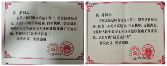(校友陈星、韩婷被湖北省人民政府授予新时代“最美逆行者”)