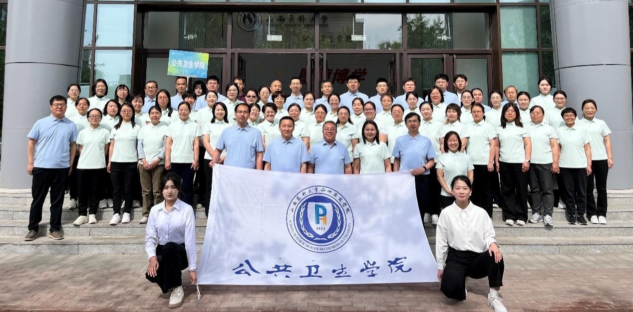 2025年5月,公共卫生学院部分教职工在中都校区新公卫大楼前合影
