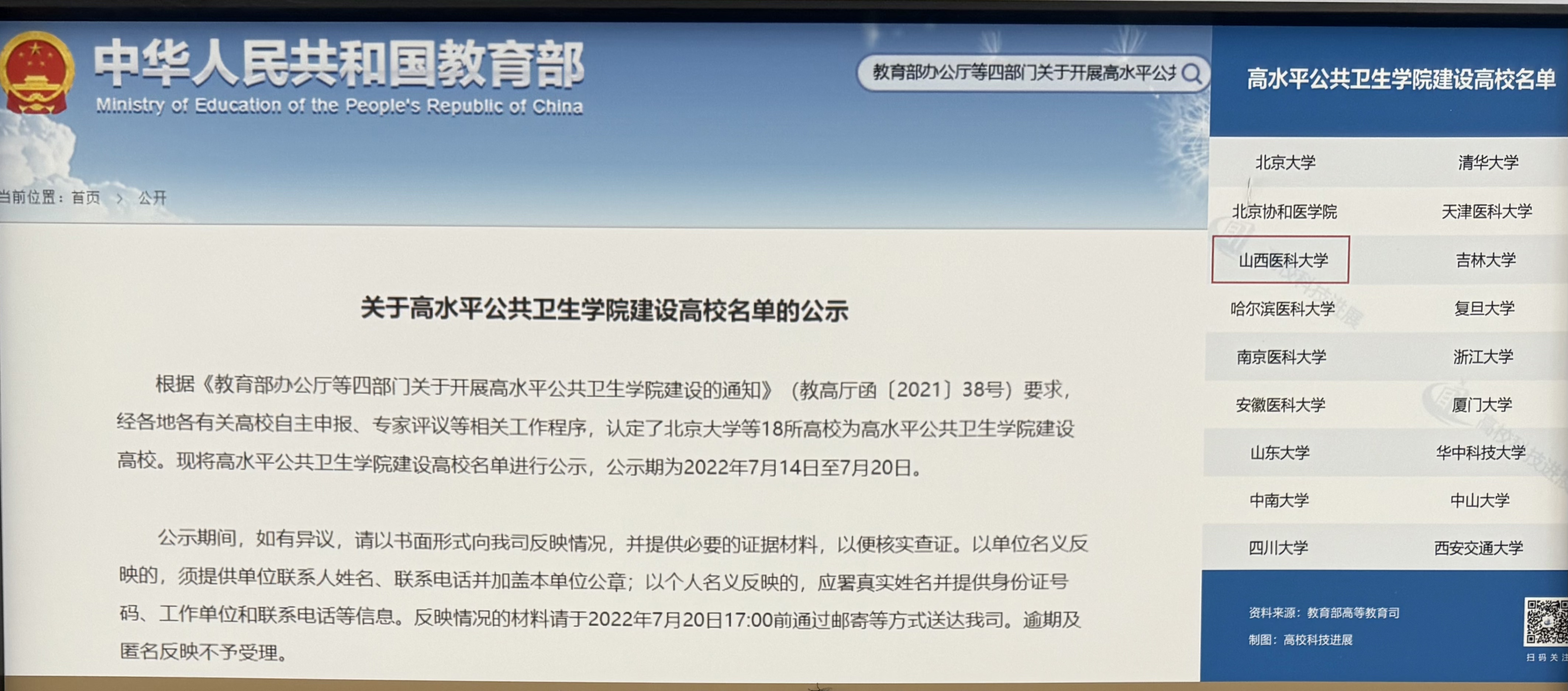 2022年 入选国家高水平公共卫生学院建设单位
