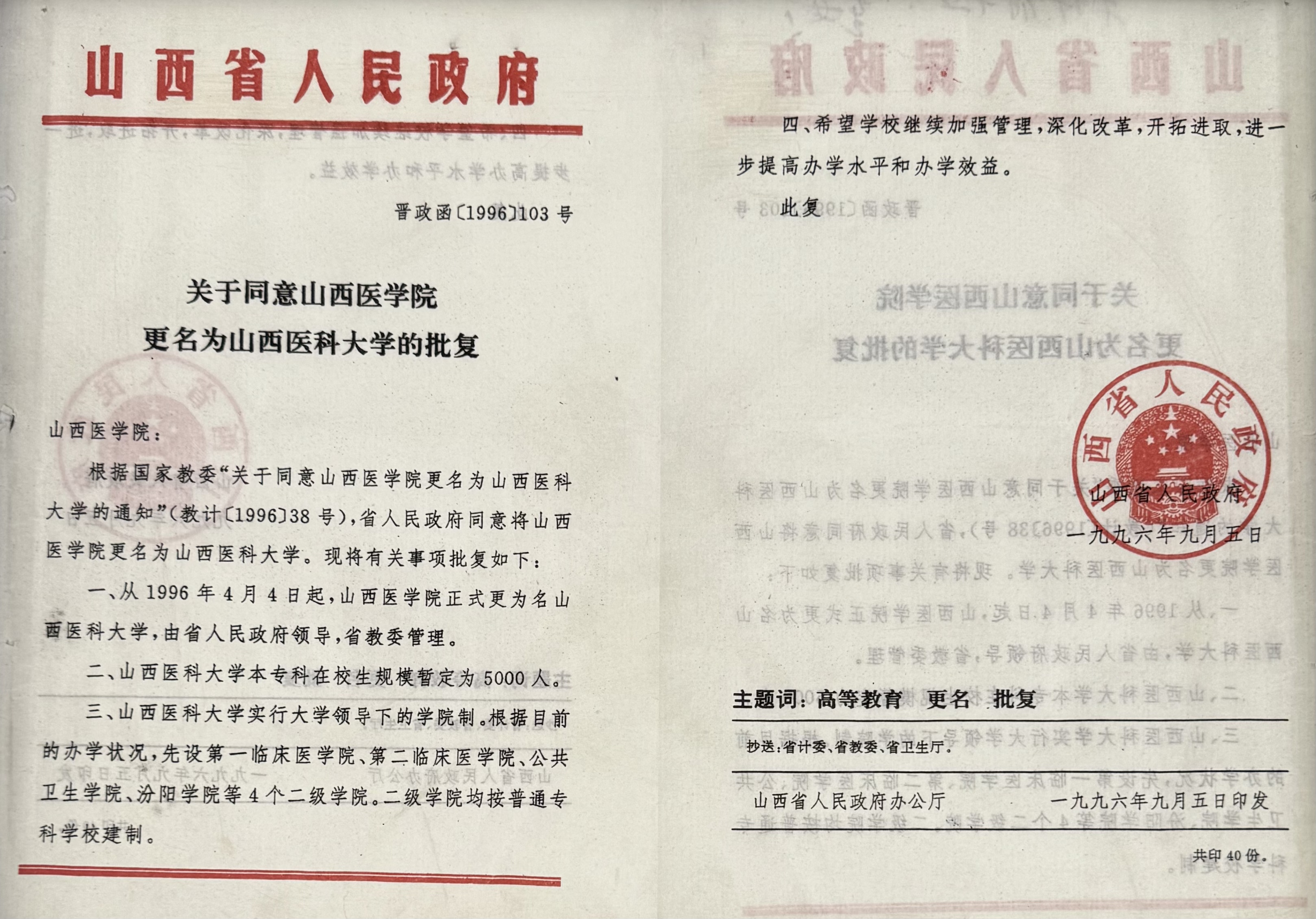1955年 服务国家战略布局,江苏医学院、山东医学院、浙江医学院3所院校的卫生系调整并入,成为新的山西医学院卫生系,为“全国六大卫生系”之一