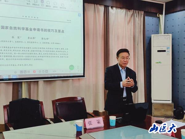 会上,张策教授进行了精彩的辅导讲座。他详细阐述了如何强化创新思维、提升创新能力,并就如何撰写国家自然科学基金申请书的技巧及要点进行了深入的剖析。