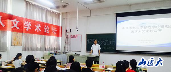 5月29日,在中都校区B座102教室,护理学院举办了医学人文论坛大赛决赛,研究生工作部部长曹小清、副部长徐爱萍,护理学院党委书记金瑞华、副院长张培莉,第一医院护理部副主任李育玲、太原市中心医院护理部主任贺润莲、第二医院西院总护士长董新寨、第一医院核医学科护士长杨素云,护理学院郭晓琴、巩小军、王磊担任评委。