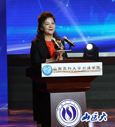 护理学院院长杨辉致辞。他说,时代的发展赋予护理更广泛的内涵,护理与国家经济、健康战略紧密关联,护士也因此在参与政府卫生政策制定、推动人类健康事业发展方面承担了更伟大的使命。护理学院作为护理人才培养的摇篮,经过18年的发展已成为山西省培养护理人才的最高学府、山西省唯一的护理学博士学位授权点、全国招收护理硕士研究生最多的院系。在学校百年华诞之际,护理学院提出“四精一特一创一变革一亮点快速补足短板”的发展规划,护理人正沉淀自我、独立思考、勇于创新、踏实奋进,用智慧担当起护理事业传承和发展的重任,在实现“健康梦”的征途上,奏动出生命中最华彩的乐章。