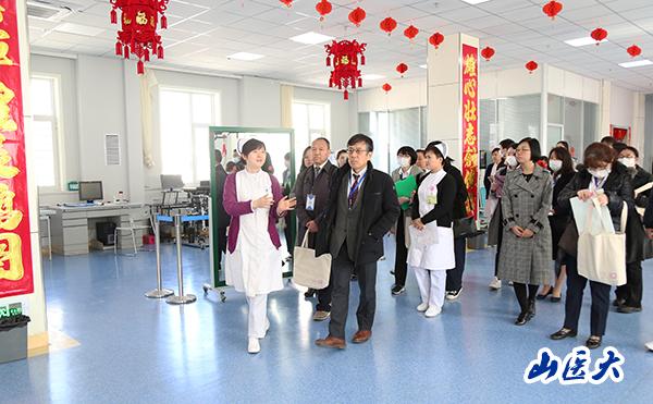 随后,商临萍就护理学院教学模式、课程设置、师资培养、学科建设、文化活动,以及新校区实训中心建设规划向来访人员做了具体的介绍,图文并茂地展示我院的办学理念和学院文化,对他们在教学科研方面的兴趣点逐一解答。在学院向来访师生赠送画册及礼品之后,康凤英等带领来访人员参观了第一医院院史馆、康复中心,我院国家级护理技能实训中心和生命科学馆,详细介绍了学院实践教学模式。