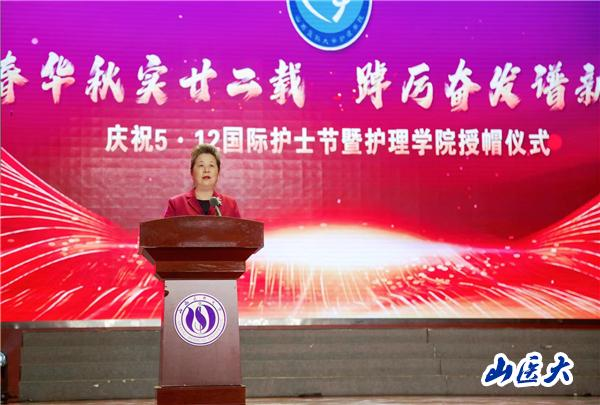 姜小鹰向学院全体师生送上了节日的祝福。她强调护士是时刻与生命同行的人,是关注健康和爱的使者。她鼓励全体护理人员不仅要站在护理的第一线,也要站在变革的第一线。在平凡的护理工作岗位上,传承和发扬“科学、人文、奉献”的南丁格尔精神。