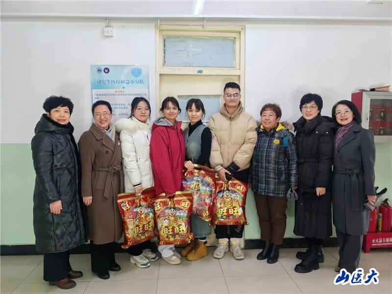 2月2日上午,万象城护理学院领导班子全体成员来到迎泽校区,为春节新疆籍留校实习生发放暖心礼包,为寒冬添上一抹暖意。
