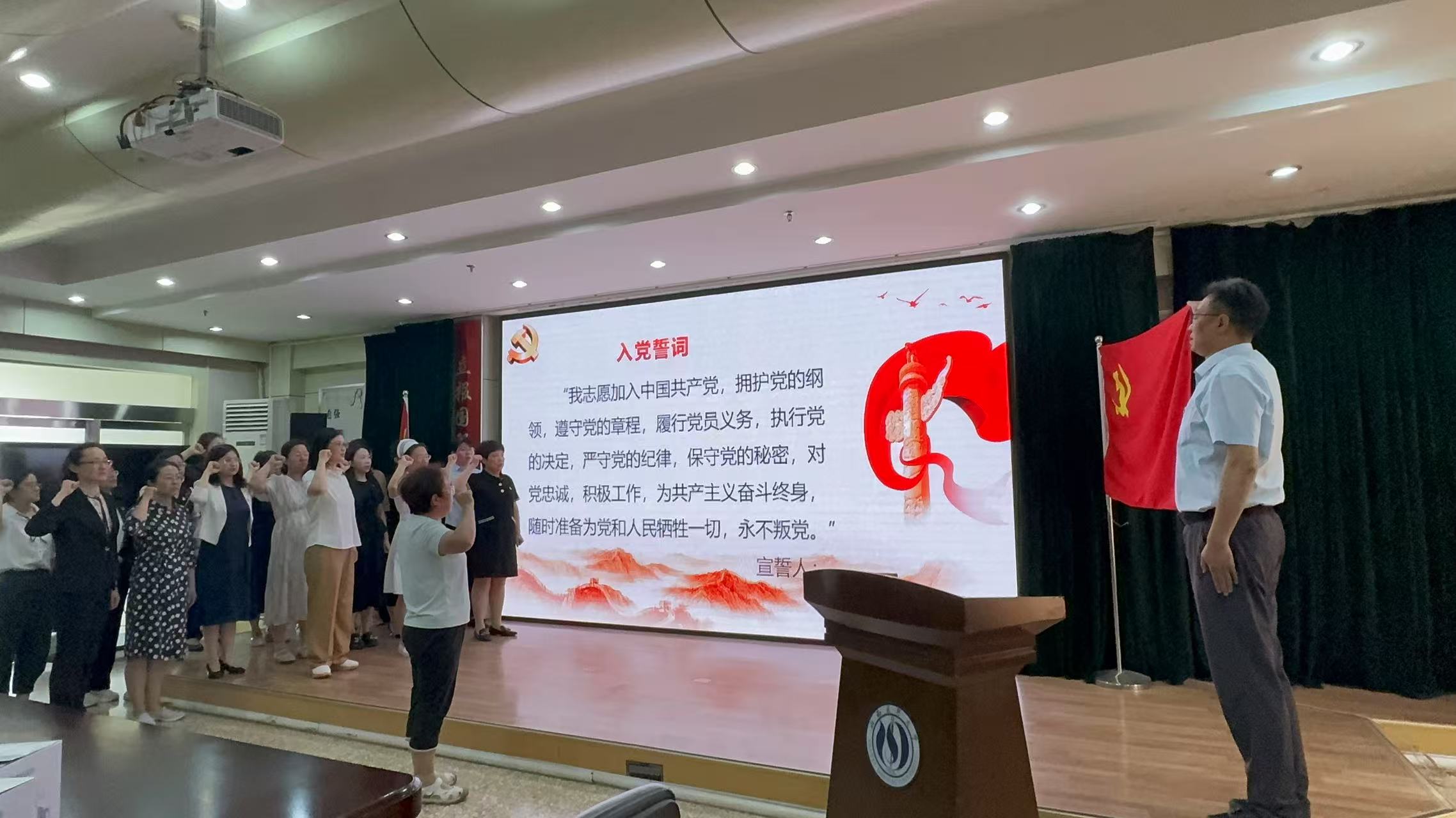 董书记带领教工党员向鲜红党旗庄严宣誓,宣誓完毕,全体教工合唱《没有共产党就没有新中国》。董书记宣读“七一”表彰决定,为获奖者颁发荣誉证书与绶带,获奖代表结合教学科研实践与支部管理经历发言。在座谈交流环节,党员们围绕“党建引领护理学科高质量发展”主题展开热烈研讨。