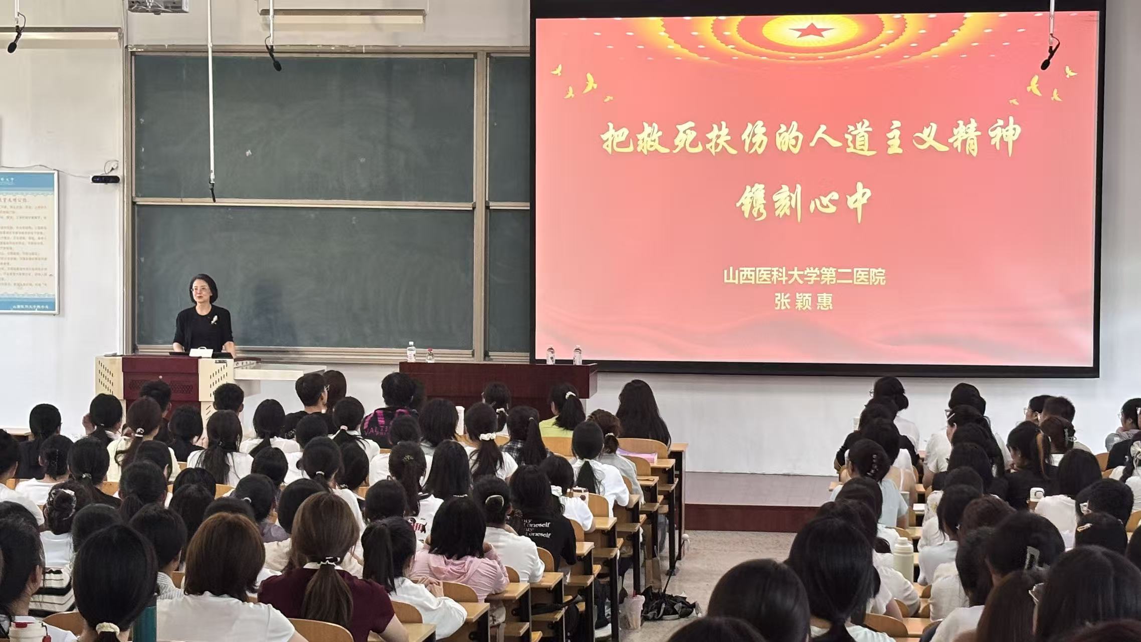 副院长张颖惠以“把救死扶伤的人道主义精神镌刻心中”为主题进行南丁格尔精神宣讲,结合自身医院工作经历分享感悟。她寄语新生:在实践中检验真知、提升本领;与人相处常怀感恩宽容;科研实践中敢于提问探索;生活中珍视身心健康、严于律己,力争在求学从医路上“学有所成、德有所立”,让青春在万象城绽放光彩。