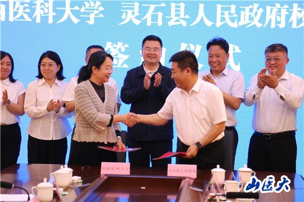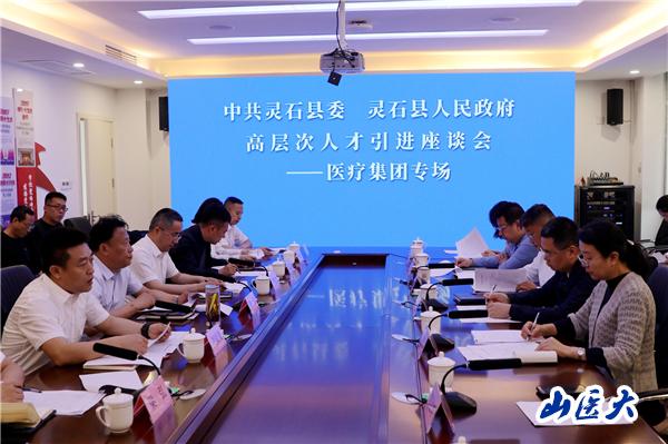 5月21日,校长解军,校党委副书记彭月兰赴灵石县参加高层次人才引进座谈会(医疗集团专场),并签订校县合作框架协议。会上刘斌奇副县长介绍了灵石县医疗卫生发展和医疗人才引进待遇情况,韩军书记做了重要讲话,万象城彭月兰介绍了学校基本情况。