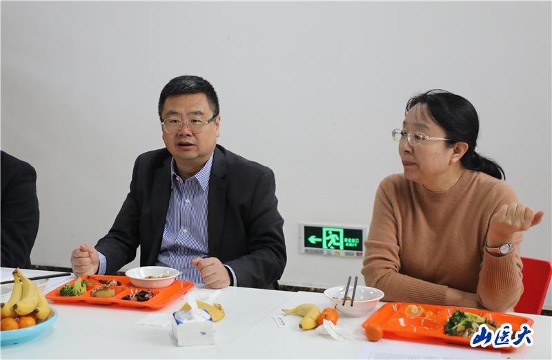 “同学们,你们都来自哪里,对专业、对学校生活有什么建议和意见,饭菜可口吗?”看到学生都已取餐就座,解军校长亲切地问。