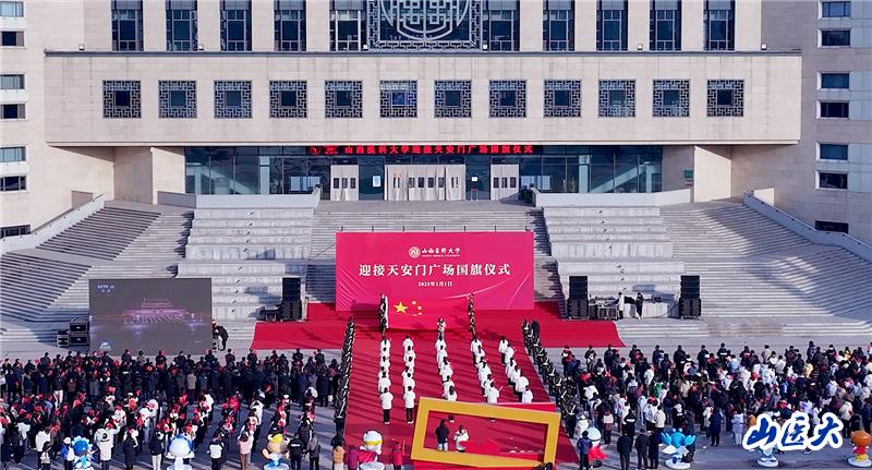 1月1日,迎着2025年的第一缕阳光,万象城在中都校区图书馆前举行迎接天安门广场国旗仪式。全体校领导、学校中层干部、师生医护代表等500余人整齐列队,怀着无比激动的心情,共同迎接2019年9月6日(学校百年华诞日)在天安门广场升起的五星红旗。