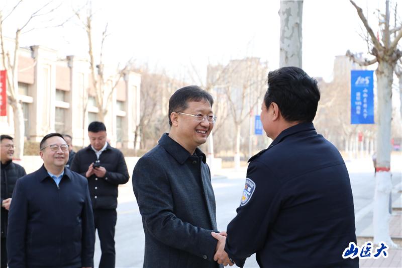 2025年春季学期开学在即。为切实做好开学前各项准备工作,2月20日上午,校党委书记王军、校长解军分别带队,对学校中都、迎泽两校区重点场所和关键部位开展了春季学期开学准备工作检查调研,校党委副书记彭月兰,副校长张岩波,党委常委、副校长焦向英陪同调研,相关部门负责人随行检查。