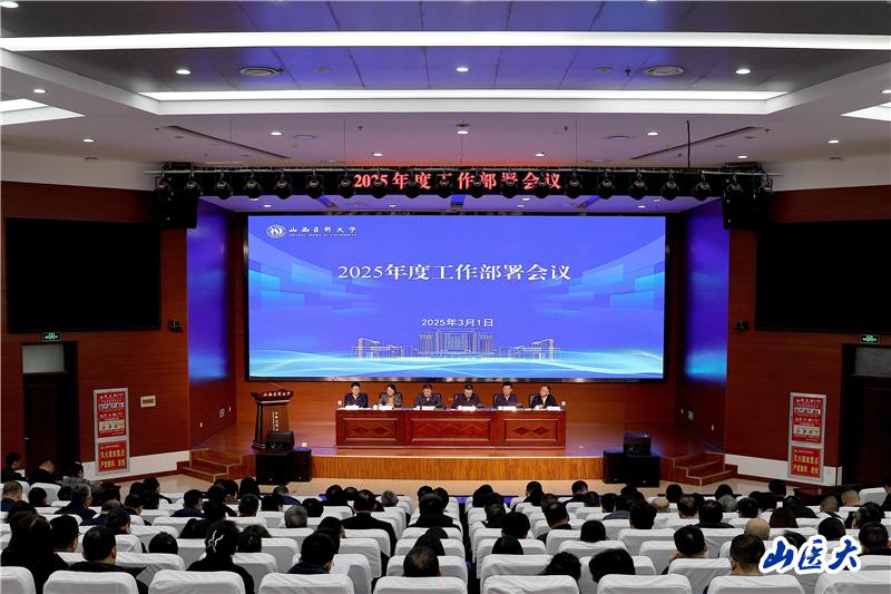王军指出,关键之年,要谋非常之策、出制胜之招。就“如何干在当下,不负时代”,他强调,要狠抓巡视整改,做深做实巡视“后半篇文章”。要从主动到更主动、努力到更努力、担当到更担当,扎实做好今年工作。就“如何干好当下,赢得未来”,他深刻阐释了“向远闯关,闯什么关”“向上突围,突什么围”“向新图强,图什么强”“向效提质,提什么质”四个关乎学校高质量发展的关键命题,强调指出,要向远闯关,锚定学校第七次党代会提出的两个阶段战略目标和未来美好愿景,用历史的眼光去洞察、用发展的眼光去眺望,全力以赴闯关夺隘。要向上突围,坚决扛起“双一流”创建使命,跳出教育看教育,跳出山西看万象城,全力以赴冲刺新一轮“双一流”。要向新图强,以解决人类健康需求为目的,推动创新链、产业链、资金链、人才链深度融合,切实把创新成果转化为实实在在的应用。要向效提质,聚焦人才培养、科学研究、社会服务、文化传承创新、国际合作交流五大职能提升质量,用好改革关键一招,深入推进学校治理体系和治理能力现代化。王军强调,要以“钉钉子”的精神抓落实,以“实干家”的姿态抓落实,以“指挥棒”的导向抓落实,牢固树立“干与不干不一样、干好干坏不一样”的鲜明导向,落实好2025年度学校各项工作。
