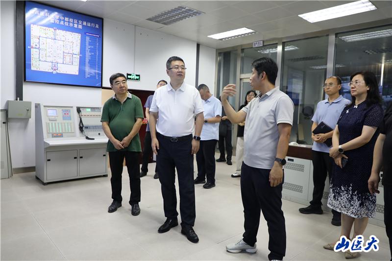 校领导一行分别到中都校区学生宿舍、校医院、校园监控室、操场、教室、第一食堂、澡堂等场所,深入了解各部门、各单位开学前各项准备工作情况,对学校安全稳定工作作出指导,并对学生返校、教学管理、教学设备升级、教室修缮、食品安全及智慧校园建设等方面现场提出加强和改进意见。