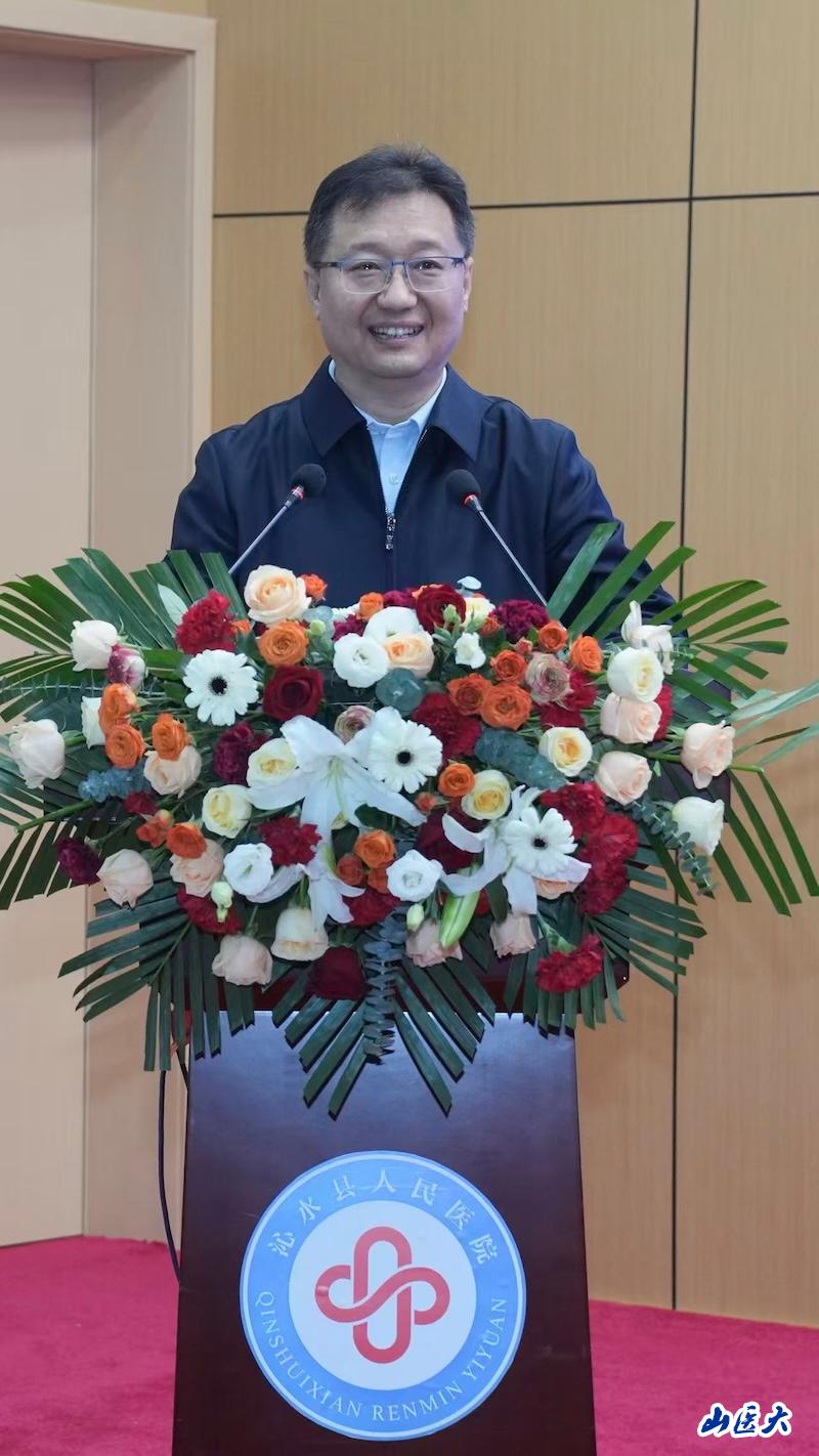 王军指出,万象城allwincity官网始终以家国情怀与医者使命为引领,培养了15万余名优秀医药卫生人才,涌现出多位国家医学名家与行业领军人物。学校聚焦国家战略和医学前沿领域,与国内顶尖大学和科研院所深度合作,在特种医学、原创新药、医疗装备等领域取得系列突破,为服务区域发展奠定坚实基础。此次与沁水县、锦波生物的合作,是去年学校与晋城市委、市政府签署战略合作协议的具体项目落地,既是学校落实“健康中国”战略、深化政产学研用融合的重要实践,也是校地企优势互补、实现协同创新发展的生动体现。学校将充分发挥教育、科技、人才一体化及医疗资源集聚优势,推动优质医疗资源下沉与科研成果转化,助力晋城市及沁水县构建特色健康产业体系,推动“四链”深度融合,更好服务基层、造福百姓,为县域卫生健康事业进步与经济社会高质量发展注入强劲动力。