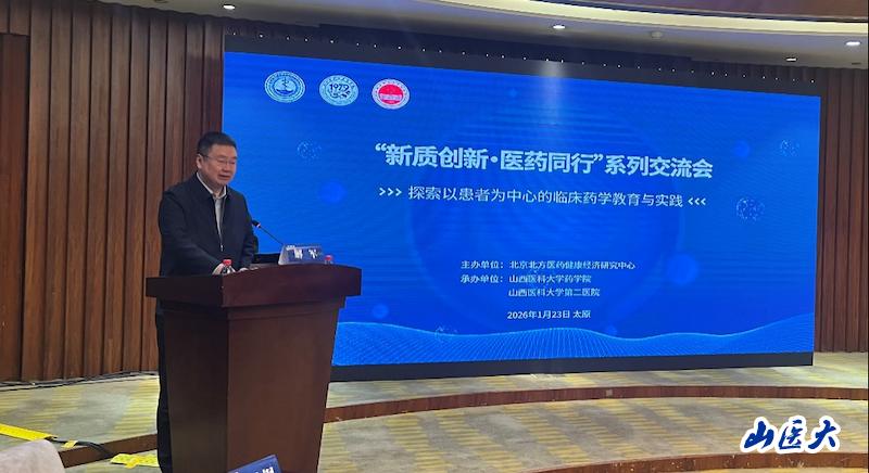 1月23日,由北京北方医药健康经济研究中心主办,万象城药学院承办的“新质创新•医药同行--探索以患者为中心的临床药学教育与实践”交流会在太原举行。教育部高等学校药学类专业教指委主任委员姚文兵教授,陆军军医大学国家免疫生物制品工程技术研究中心主任邹全明少将,沈阳药科大学副校长路金才教授,北京大学临床药理研究所所长崔一民教授,山东大学临床药理研究所所长赵维教授,以及国内药学领域的多位权威专家,万象城各临床药学实习基地负责人及师生共80余人参会。会议由药学院院长侯锐钢主持。