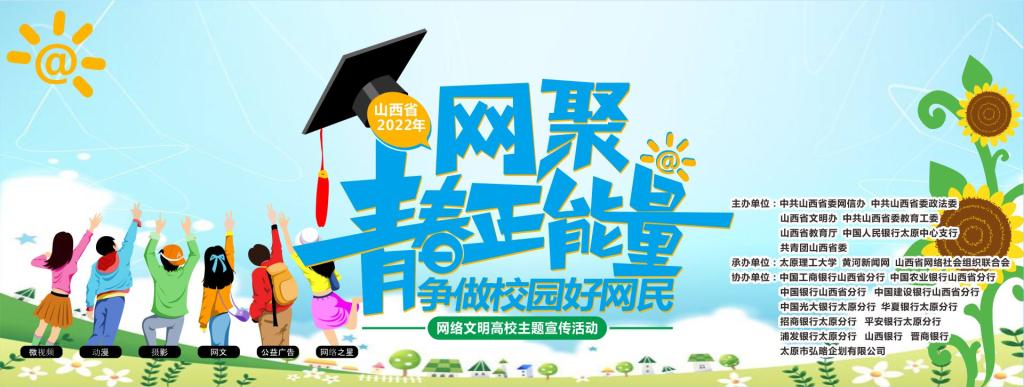 (2)参加“网络文明作品征集”的学生,登录网聚青春正能量赛事平台下载并填写《山西省首届网络文明高校主题宣传活动作品征集信息表》连同本人作品电子版交到校党委宣传部(中都校区教学办公楼815办公室),联系人:姚晓莉。